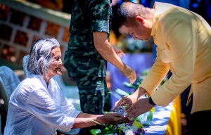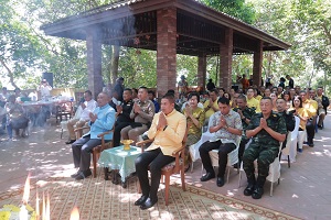 โอกาสนี้ พลโท ไพศาล หนูสังข์ แม่ทัพภาคที่ 4 / ผู้อำนวยการรักษาความมั่นคงภายในภาค 4 ได้กล่าวพบปะ พร้อมอวยพรแก่พุทธศาสนิกชนที่ร่วมงานว่า “การส่งเสริมกิจกรรมทางศาสนานับเป็นอีกหนึ่งภารกิจสำคัญ ที่ทางกองอำนวยการรักษาความมั่นคงภายในภาค 4 ส่วนหน้า ได้ดำเนินการอย่างต่อเนื่อง โดยมี พลเอก มณี จันทร์ทิพย์ ที่ปรึกษาผู้อำนวยการรักษาความมั่นคงภายในภาค 4 เป็นผู้ดูแลภารกิจโดยตรง วันนี้เนื่องในวันสงกรานต์ วันครอบครัว วันผู้สูงอายุ ก็ถือโอกาสอวยพรให้บุญกุศลที่ร่วมกันทำในวันนี้ ส่งผลให้ทุกคนมีแต่ความสุข แคล้วคลาดปลอดภัย คิดสิ่งใดก็สมหวังทุกประการ“