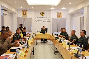 โดยในที่ประชุม พลตรี วรเดช เดชรักษา รองแม่ทัพภาคที่ 4 /รองผู้อำนวยการรักษาความมั่นคงภายในภาค 4 ส่วนหน้า ได้กำชับ และมอบแนวทางการปฏิบัติงานให้ทุกหน่วยในพื้นที่ยกระดับการรักษาความปลอดภัย โดยเฉพาะช่วงเทศกาลสงกรานต์ ซึ่งเป็นวันหยุดยาว ฝากให้เจ้าหน้าที่เพิ่มความเข้มงวดในการรักษาความปลอดภัย โดยให้ยึดตามแผนการรักษาความปลอดภัยเขตเมืองเศรษฐกิจ 8 เมืองหลัก ซึ่งทุกหน่วยได้มีการซักซ้อมแผนเผชิญเหตุ ขอให้นำประสบการณ์บทเรียนจากเหตุการณ์ที่ผ่านมานำมาปรับใช้ในการปฏิบัติงาน ทั้งนี้ส่วนราชการ เจ้าหน้าที่ทหาร ตำรวจ และฝ่ายปกครอง ในพื้นที่ต้องร่วมบูรณาการกำลัง และบูรณาการปฎิบัติตามที่ได้มีการซักซ้อมการปฏิบัติตามแผนรักษาความปลอดภัยในพื้นที่รับผิดชอบอย่างเข้มงวด ต้องเฝ้าระวังไม่ให้ผู้ก่อเหตุรุนแรงเข้ามาก่อเหตุในพื้นที่ เพื่อสร้างความเชื่อมั่น ให้กับพี่น้องประชาชน นักท่องเที่ยว และนักลงทุนทางเศรษฐกิจ ที่จะเข้ามาลงทุนในพื้นที่จังหวัดชายแดนภาคใต้ ซึ่งหากพื้นที่ปลอดภัยไม่เกิดเหตุการณ์ พื้นที่ปลอดเหตุ ประชาชนปลอดภัย การพัฒนาในด้านต่างๆจะดีขึ้นตามลำดับ