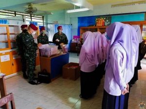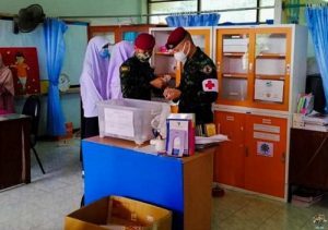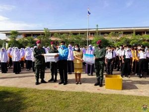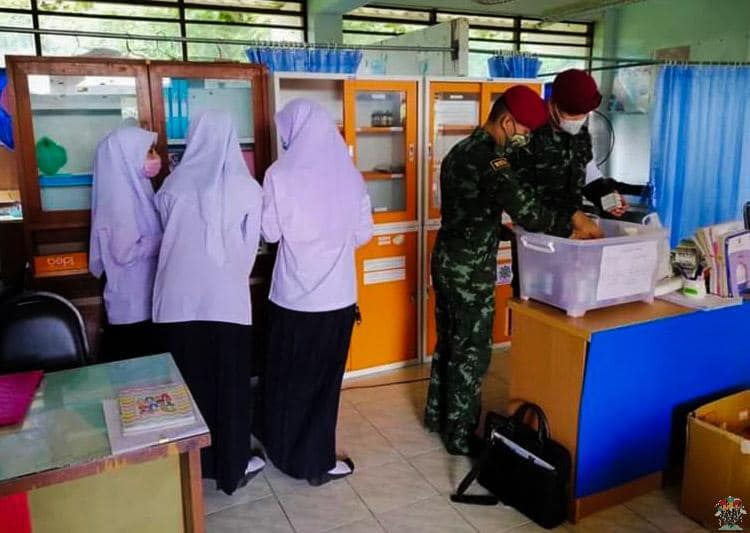 ชุดควบคุมทักษิณสัมพันธ์ หน่วยเฉพาะกิจสันติสุข ยังคงเดินทาง ส่งความห่วงใย ดำเนินการมอบยารักษาโรค และ Face Shield ให้กับทางโรงเรียน ไว้ใช้ในโรงเรียน ภายใต้โครงการตู้ยาเพื่อน้อง 3 จังหวัดชายแดนใต้ ณ สถานศึกษาโรงเรียนประตูโพธิ์วิทยา หมู่ที่ 1 บ้านซามู ตำบลปิตูมุดี อำเภอยะรัง จังหวัดปัตตานี ซึ่งมี ผู้อำนวยการโรงเรียนประตูโพธิ์วิทยาฯ นายธนกฤต นิลราช เป็นผู้รับมอบ โดยชุด ฯ ได้ให้หนังสือคู่มือการใช้งานของตู้ยา พร้อมกับเเนะนำการรับทานยาและการใช้เวชภัณฑ์ อย่างถูกวิธีในการเก็บรักษายา ตลอดจนการเเจกจ่ายยาตามคู่มือให้กับเด็กนักเรียนที่ได้รับบาดเจ็บหรือมีอาการเจ็บป่วยเบื้องต้นแก่นักเรียนและคณะครู ต่อไป