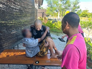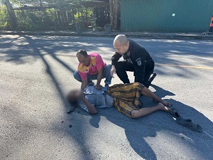 ทราบชื่อผู้บาดเจ็บภายหลังคือ นายมะกอเด็ง หามะ อายุ 73 ปี ภูมิลำเนาอยู่บ้านหมู่ที่ 4 ตำบลกาลอ อำเภอรามัน จังหวัดยะลา ได้รับบาดเจ็บบริเวณศีรษะจากอุบัติเหตุรถจักรยานยนต์ล้มลง เจ้าหน้าที่ทั้งสองจึงรีบเข้าให้ความช่วยเหลือโดยการเคลื่อนย้ายผู้บาดเจ็บไปยังที่ปลอดภัย พร้อมปฐมพยาบาลเบื้องต้น และประสานเจ้าหน้าที่กู้ภัยให้นำส่งโรงพยาบาลยะลาเพื่อรับการรักษาต่อไป