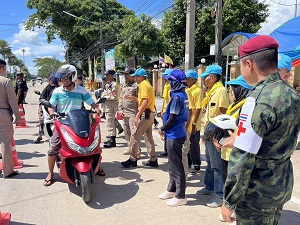Di pusat khidmat orang awam di hadapan Pejabat Daerah Bacho, Wilayah Narathiwat, Pasukan Petugas Khas Santisuk melalui Pasukan Santisuk 405 telah bekerjasama dengan Balai Polis Daerah Bacho, Kompeni Tentera Marin Renjer ke-5, agensi-agensi kerajaan tempatan, anggota sukarelawan pertahanan wilayah (Or Sor), serta pemimpin komuniti. Mereka telah menganjurkan aktiviti sekatan jalan dan pusat khidmat kepada orang awam di bawah projek “Pemanduan Selamat, Thailand Bebas Kemalangan” bagi mencegah dan mengurangkan kemalangan jalan raya. Fokus utama adalah untuk memupuk kesedaran masyarakat terhadap keselamatan jalan raya, di samping memperkukuh hubungan serta kerjasama antara agensi-agensi kerajaan di kawasan tersebut.