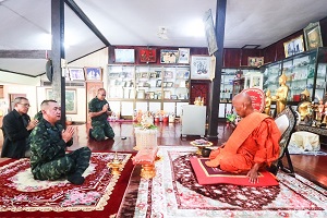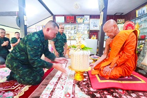 On April 17, 2025, Major General Narong Tantisitthiporn, Commander of the 15th Infantry Division / Commander of the Narathiwat Special Task Force / Director of the Royal Initiative Coordination Center, along with his delegation, paid respects and performed the traditional water-pouring ceremony to seek blessings from Phra Thammavajrayariyacharn, Advisor to the Chief Monk of Region 18 / Abbot of Wat Prachumchonthara (Wat Su-ngai Padi), on the occasion of Songkran — the Thai New Year festival filled with meaning, respect, and auspiciousness — at Wat Prachumchonthara (Wat Su-ngai Padi), Su-ngai Padi District, Narathiwat Province.