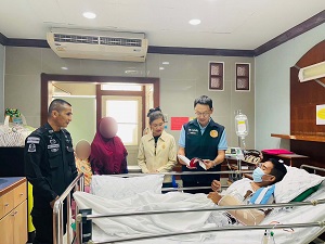 In addition to monitoring the soldier’s recovery, the Chanae District Chief also provided financial assistance to support the affected personnel, aiming to lift the spirits of both the officers and their families caring for the injured.
