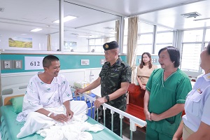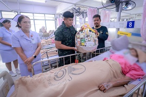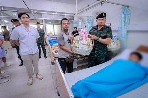 จากนั้นเวลา 14.00 น. แม่ทัพภาคที่ 4 / ผู้อำนวยการรักษาความมั่นคงภายในภาค 4 และคณะ ได้เดินทางต่อไปยังโรงพยาบาลสุไหงโก-ลก อำเภอสุไหงโก-ลก จังหวัดนราธิวาส เพื่อเข้าเยี่ยมให้กำลังใจ พูดคุยสอบถาม พร้อมมอบกระเช้าเยี่ยมป่วยและเงินบำรุงขวัญแก่ผู้ได้รับบาดเจ็บจากเหตุการณ์ความรุนแรงดังกล่าว เพื่อเป็นขวัญกำลังใจแก่ผู้ได้รับบาดเจ็บและครอบครัว ซึ่งประกอบด้วย