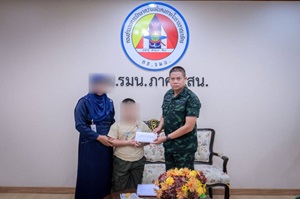 The Internal Security Operations Command Region 4 Front (ISOC Region 4 Front), in collaboration with TV Burapa Co., Ltd., represented by Ms. Thaniya Thammawatthana, has provided financial support to the families of officers who lost their lives due to unrest in Thailand’s southern border provinces. Today (April 23, 2025) at 8:15 a.m., at the reception room of ISOC Region 4 Front, Sirindhorn Camp, Khao Tum Subdistrict, Yarang District, Pattani Province, Lieutenant General Paisan Nusang, Commander of the 4th Army Region and Director of ISOC Region 4, presided over the ceremony to present financial aid to the families of officers who died due to the unrest in the southern border provinces.This financial support was generously provided by TV Burapa Co., Ltd., represented by Ms. Thaniya Thammawatthana.Also in attendance were Major General Chakrit Ucharat, Deputy Commander of the 4th Army Region and Deputy Director of ISOC Region 4 Front, the District Chief of Su-ngai Kolok, the Superintendent of Border Patrol Police Company 44, Chief of Staff of the Special Task Force “Santisuk,” and other related officials. According to TV Burapa Co., Ltd., Ms. Thaniya Thammawatthana provided a donation of 200,000 THB to support the families of officers who lost their lives.This amount was intended for the families of officers from the Ban Tue-ngor Border Patrol Police School, affiliated with the Border Patrol Police Company 44, who passed away on January 14, 2025, and members of the territorial defense volunteers from Su-ngai Kolok District, Narathiwat Province, who died on March 8, 2025.Each of the four families received 50,000 THB, including the families of: Police Lieutenant Colonel Suwit Chuathewarit Police Sergeant Major Dom Chuathewarit Senior Private Muhammad Sabri Nasuwan Territorial Defense Volunteer Totsaphon Paiphim The financial aid aims to alleviate the hardship of the families and provide educational support for the children of the deceased. On this occasion, Lieutenant General Paisan Nusang expressed his sympathy to the families of the fallen heroes, saying: “I would like to offer my heartfelt support to the families of the four brave individuals. Please know that both government agencies and the private sector deeply care and are sincerely grateful for the sacrifices made by each of your loved ones.” Ms. Karat, a family member of Territorial Defense Volunteer Totsaphon Paiphim, one of the fallen heroes, shared: “He was someone who got along with everyone, the heart and soul of our home. Our family was very close. He had only just joined the territorial defense force for a few months when the incident happened, and we lost someone so dear to us. We still can’t come to terms with it. We don’t know what the future holds. We are just truly thankful to everyone who has provided support.” She concluded by saying: “I want to send encouragement to all officers working in the area, and I sincerely urge those in authority, those responsible for maintaining peace, to do all they can so that tragedies like this never happen again. No one, no family, should have to suffer such loss. We hope to see peace return to the southern border provinces once more.” #PublicRelationsCenter#4thArmyRegionCommander #CommanderPaisan#ISOCRegion4Front