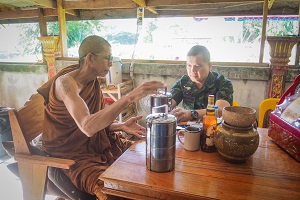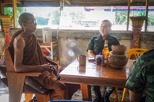 During his visit, Major General Woradet also met with Phra Manop Mahaviro, the abbot of Wat Ko Aphinihan, to offer words of support and presented a donation envelope to boost the morale of the monastic community.