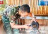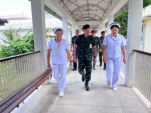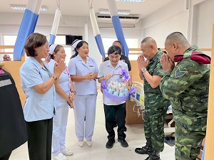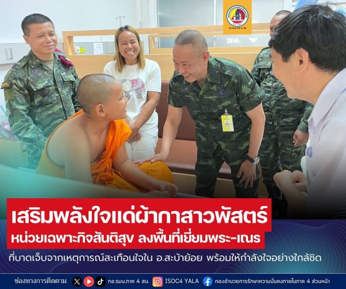 To show solidarity and compassion during this difficult time, the Santisuk Task Force—comprising Unit 505 in collaboration with the Taksin Samphan Unit 551—joined by Colonel Thanuth Phisansitthiwat, Deputy Director of Internal Security Operations Command in Songkhla, and representatives from the Thai Volunteer Defense Corps in Saba Yoi, visited the injured monks and novices to offer moral support.
