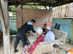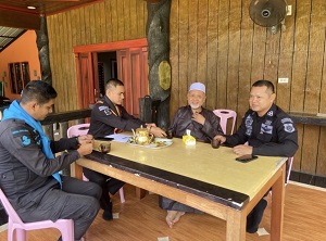 At 1:00 PM, Captain Sutthirak Soongyai, Commander of Ranger Company 4902, and his troops visited Mr. Mukhtar Masa, the Imam of Rue Po Mosque in Village 4, Rue Po, Dusong Yor Subdistrict. They communicated with the public about misinformation spread via social media and encouraged community members to help share truthful information.
