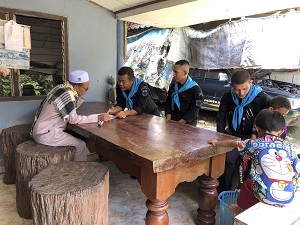Pada jam 10.30 pagi, anggota dari Kompeni Renjer 4905 mengunjungi Encik Sapa-ing Yusoh, Imam Masjid Solahuddin, Kampung Air Gusa, Mukim Chang Phueak untuk memperjelas situasi semasa serta memohon kerjasama dalam menyampaikan maklumat yang sahih kepada masyarakat.