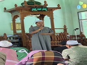 On the same day, at 1:30 PM, troops from Ranger Company 4910 visited Mr. Asming Katai, the Imam of Nurul Amaniyah Mosque in Village 4, Air Kasah, Chang Phueak Subdistrict. They aimed to build understanding about the current situation and sought cooperation in reporting any suspicious individuals seen moving in the area.