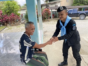 At 10:30 AM, troops from Ranger Company 4905 met with Mr. Sapa-ing Yuso, the Imam of Salahuddin Mosque in Village 3, Air Gusa, Chang Phueak Subdistrict, to discuss the current situation and seek cooperation in spreading accurate information to the public.