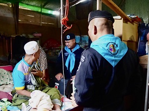 Dalam misi kali ini, pasukan perubatan dan pegawai Hal Ehwal Awam bekerjasama dengan pasukan perlindungan kampung, pembantu ketua kampung, dan sukarelawan kesihatan setempat untuk memeriksa kesihatan serta memberi semangat kepada Encik Waya Dueramae, 48 tahun, seorang pesakit yang memerlukan penjagaan berterusan dari segi fizikal dan mental.