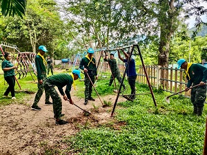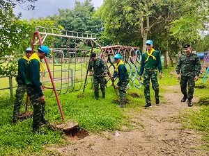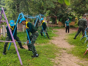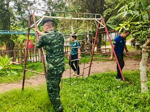 โดยกิจกรรมในครั้งนี้มุ่งเน้นให้พื้นที่สนามเด็กเล่นกลายเป็นสถานที่ที่สะอาด ปลอดภัย และน่าใช้งานสำหรับนักเรียน พร้อมต้อนรับการกลับมาเรียนของเด็ก ๆ ในภาคเรียนใหม่ โดยการดำเนินการไม่เพียงแต่เป็นการพัฒนาพื้นที่สาธารณะ แต่ยังสื่อถึงความห่วงใยของทหารที่มีต่อชุมชนและอนาคตของเยาวชนในพื้นที่