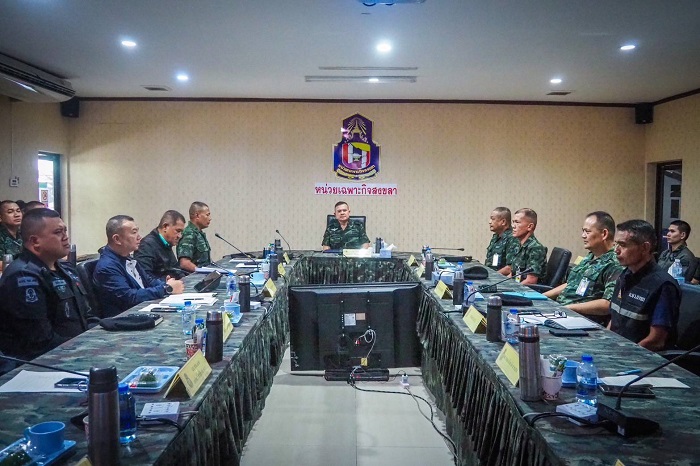 วันนี้ ( 28 เมษายน 2568 ) เวลา 14.00 น. เข้าสู่หนึ่งสัปดาห์ ที่ พลตรี วรเดช เดชรักษา รองแม่ทัพภาคที่ 4 / รองผู้อำนวยการรักษาความมั่นคงภายในภาค 4 ส่วนหน้า ลงพื้นที่ติดตามสถานการณ์ความรุนแรงที่เกิดขึ้นในพื้นที่ หลังยกระดับการรักษาความปลอดภัย พื้นที่รอยต่ออำเภอสะบ้าย้อย จังหวัดสงขลา กับอำเภอโคกโพธิ์ จังหวัดปัตตานี โดยมีคณะผู้บังคับบัญชา , ผู้แทนฝ่ายอำนวยการของกองอำนวยการรักษาความมั่นคงภายในภาค 4 ส่วนหน้า และหัวหน้าส่วนราชการ ทหาร ตำรวจ พลเรือน เข้าร่วมประชุมติดตามสถานการณ์