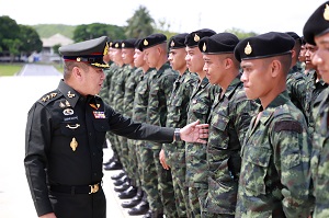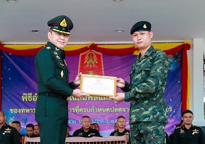 Sepanjang tempoh perkhidmatan sebagai tentera tetap, para anggota telah membuktikan bahawa mereka telah melaksanakan tanggungjawab sebagai rakyat lelaki Thailand dengan sempurna dan menunjukkan semangat juang sejati. Ini menjadi kebanggaan kepada setiap peringkat pegawai atasan. Kini, unit kami sedang menjalankan misi penting di kawasan tiga wilayah selatan sempadan, satu tanggungjawab besar dan mulia. Ramai rakan seperjuangan telah mengorbankan nyawa demi mempertahankan tanah air, dan mereka adalah wira sejati negara. Semoga semua sentiasa mengingati tanggungjawab untuk membantu rakyat serta menggunakan ilmu dan pengalaman ketenteraan untuk membina kehidupan yang baik, menjadi warga yang jujur, dan menyumbang kepada masyarakat dan negara.