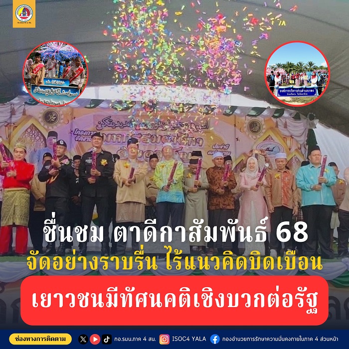 อย่างไรก็ตาม งานตาดีกาสัมพันธ์ในปี 2568 ได้แสดงให้เห็นถึงพลังของ “ความร่วมมือ” อย่างแท้จริง ทุกภาคส่วน ทั้งภาครัฐ องค์กรศาสนา ผู้นำชุมชน รวมถึงสถานศึกษาตาดีกาที่เข้าร่วม ต่างมีความเข้าใจตรงกันในจุดยืน ไม่อนุญาตให้เวทีของเด็กและเยาวชนถูกใช้เป็นพื้นที่บิดเบือนความจริงอีกต่อไป ซึ่งกองอำนวยการรักษาความมั่นคงภายในภาค 4 ส่วนหน้า ร่วมกับกระทรวงศึกษาธิการ หน่วยงานท้องถิ่น และภาคประชาสังคม ได้ร่วมกำกับ ดูแล และให้การสนับสนุน เป็นอย่างดี ส่งผลให้งานปีนี้ สำเร็จลุล่วง อย่างสงบ ราบรื่น และสร้างผลสัมฤทธิ์เชิงบวกต่อจิตใจและทัศนคติของเยาวชนในพื้นที่จังหวัดชายแดนภาคใต้อย่างเป็นรูปธรรม