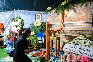 Panglima Divisyen Infantri Ke-15 menghadiri majlis keagamaan dan upacara pembacaan doa untuk mendiang “Puan Sanga Saengyoi”, mangsa yang terkorban akibat insiden keganasan di wilayah selatan Thailand.