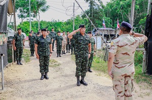 วันนี้ (8 พฤษภาคม 2568) เวลา 08.45 น. พลเอก พนา แคล้วปลอดทุกข์ ผู้บัญชาการทหารบก / ผู้บัญชาการศูนย์ปฏิบัติการกองทัพบก / รองผู้อำนวยการรักษาความมั่นคงภายในราชอาณาจักร พร้อมคณะผู้บังคับบัญชาฯ ลงใต้ เดินทางตรวจเยี่ยมกำลังพล พร้อมส่งต่อกำลังใจให้แก่กำลังพลที่ปฎิบัติหน้าที่ในพื้นที่ ณ ฐานปฏิบัติการชุดคุ้มครองตำบลทุ่งพอ อำเภอสะบ้าย้อย จังหวัดสงขลา พร้อมรับฟังการบรรยายสรุป ติดตามผลการปฏิบัติงาน และร่วมพบปะกำลังพล มอบของอุปโภค บริโภคเพื่อแทนคำขอบคุณและเป็นขวัญกำลังใจในการปฏิบัติหน้าที่ โดยมี พลโท ไพศาล หนูสังข์ แม่ทัพภาคที่ 4 / ผู้อำนวยการรักษาความมั่นคงภายในภาค 4, พลตรี วรเดช เดชรักษา รองแม่ทัพภาคที่ 4 / รองผู้อำนวยการรักษาความมั่นคงภายในภาค 4 ส่วนหน้า, พลตรี ชาคริต อุจะรัตน รองแม่ทัพภาคที่ 4 / รองผู้อำนวยการรักษาความมั่นคงภายในภาค 4 ส่วนหน้า และส่วนที่เกี่ยวข้องร่วมคณะติดตาม