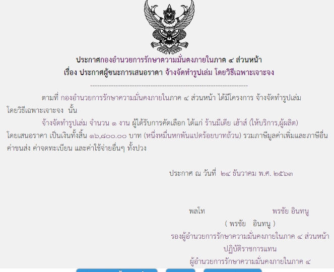 ประกาศผู้ชนะการเสนอราคา จ้างจัดทำรูปเล่ม โดยวิธีเฉพาะเจาะจง (16,800.00)