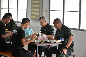 พลตรี วรเดช เดชรักษา รองแม่ทัพภาคที่ 4/ รองผู้อำนวยการรักษาความมั่นคงภายในภาค 4 ส่วนหน้า ได้พบปะ พูดคุยสอบถามให้กำลังใจน้องทหารใหม่ พร้อมทั้งได้นำนโยบาย ข้อสั่งการจากผู้บังคับบัญชา มาบอกกล่าวยังหน่วยฝึกให้ปฏิบัติตามข้อสั่งการ รวมถึงนำข้อห่วงใยจากผู้บังคับบัญชามาถ่ายทอดสู่น้อง ๆ ทหารใหม่ ทั้งเรื่องของหลักสูตรการฝึก เรื่องคุณภาพชีวิตความเป็นอยู่ของทหารใหม่ให้เป็นไปตามนโยบายของกองทัพบก โดยให้ดูแลน้องทหารใหม่เสมือนเป็นคนในครอบครัว ให้ดูแลความเป็นอยู่อย่างคลอบคลุมในทุกด้านตลอดระยะเวลาการฝึก โดยเฉพาะในเรื่องของการปรับสภาพแวดล้อมในโรงนอน ให้มีอากาศถ่ายเทตามที่กรมการแพทย์ทหารบกกำหนด รวมไปทั้งการติดตั้งมุ้งลวดโรงนอนเพื่อป้องกันโรคไข้เลือดออก รวมถึงโรคติดต่อโรคระบาดทุกประเภท รวมถึงเน้นย้ำความปลอดภัยในระหว่างการฝึกให้ครูฝึกได้สังเกตและเฝ้าระวังโรคลมร้อน (Heat Stroke) และสังเกตภาวะทางอารมณ์ ภาวะความเครียดที่อาจเกิดขึ้นกับทหารใหม่ในช่วงปรับตัวขอให้ครูฝึกได้มีการดูแลพูดคุยอย่างใกล้ชิด พร้อมกันให้มีการสนับสนุนการศึกษาต่อ ไม่ว่าจะเป็นการศึกษาในระดับที่สูงขึ้น และแนะนำโอกาสในการสอบเป็นนักเรียนนายสิบทหารบก เพื่อเพิ่มความก้าวหน้าในการบรรจุเข้ารับราชการทหาร นำไปสู่ความมั่นคงในอนาคตภายภาคหน้าแก่ทหารใหม่อีกด้วย