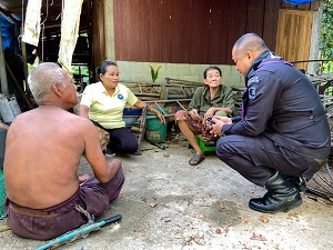 การลงพื้นที่ในครั้งนี้ เป็นไปตามดำริของผู้อำนวยการรักษาความมั่นคงภายในภาค 4 ที่ต้องการสร้างความเชื่อมั่นและความปลอดภัยให้กับพี่น้องประชาชนในพื้นที่ ด้วยการพูดคุยสอบถามถึงสภาพความเป็นอยู่ รับฟังปัญหา ข้อเสนอแนะ และให้การช่วยเหลือในสิ่งที่จำเป็น พร้อมกันนี้ยังได้มอบเครื่องอุปโภคบริโภค เพื่อเป็นขวัญและกำลังใจให้กับชาวบ้าน บรรยากาศเต็มไปด้วยความอบอุ่น เป็นกันเอง สะท้อนถึงสายใยความผูกพันระหว่างเจ้าหน้าที่และประชาชน ที่เปรียบเสมือน “ครอบครัวเดียวกัน”