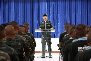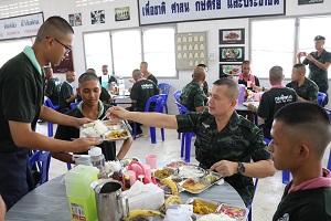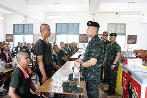 โอกาสนี้ รองแม่ทัพภาคที่ 4 / รองผู้อำนวยการรักษาความมั่นคงภายในภาค 4 ส่วนหน้า ได้พบปะพูดคุยสอบถามให้กำลังใจน้องทหารใหม่ พร้อมทั้งได้นำนโยบายข้อสั่งการจากผู้บังคับบัญชามาบอกกล่าวยังหน่วยฝึกให้ปฎิบัติตามข้อสั่งการ รวมถึงนำข้อห่วงใยจากผู้บังคับบัญชามาถ่ายทอดสู่น้อง ๆ ทหารใหม่ ทั้งเรื่องของหลักสูตรการฝึก เรื่องคุณภาพชีวิตความเป็นอยู่ของทหารใหม่ให้เป็นไปตามนโยบายของกองทัพบก โดยให้ดูแลน้องทหารใหม่เสมือนเป็นคนในครอบครัว ให้ดูแลความเป็นอยู่อย่างครอบคลุมในทุกด้านตลอดระยะเวลาการฝึก โดยเฉพาะในเรื่องของการปรับสภาพด้านร่างกาย จิตใจ รวมถึงดูแลเรื่องโรคภัยไข้เจ็บโรคประจำตัวของทหารใหม่ พร้อมเน้นย้ำให้หน่วยฝึกทหารใหม่ได้จัดเตรียมสถานที่สภาพแวดล้อมในหน่วยฝึก ทั้งโรงนอน โรงเลี้ยง ห้องปฐมพยาบาล และระบบสุขาภิบาล รวมถึงสถานที่สำหรับประกอบศาสนกิจ ให้มีความเหมาะสมตามมาตราฐานการฝึก