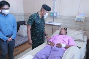 ที่ หอผู้ป่วยพิเศษศัลยรักษ์ ชั้น 5 โรงพยาบาลปัตตานี จ.ปัตตานี พลโท พรศักดิ์ พูลสวัสดิ์ แม่ทัพภาคที่ 4 เข้าเยี่ยมอาการบาดเจ็บของ อส.ทพ. อูมา อาแว ที่ได้รับบาดเจ็บจากเหตุการณ์ดังกล่าว โดยแม่ทัพภาคที่ 4 ได้นำความห่วงใยจาก พลเอก อภิรัชต์ คงสมพงษ์ ผบ.ทบ./ รอง.ผอ.รมน. ที่ได้ฝากถึงเจ้าหน้าที่ผู้ได้รับบาดเจ็บ และครอบครัว พร้อมเน้นย้ำเรื่องสวัสดิการ ด้านการรักษาพยาบาลอย่างดีที่สุด ก่อนที่แม่ทัพภาคที่ 4 จะได้มอบกระเช้าเยี่ยมผู้ป่วย พร้อมเงินช่วยเหลือเป็นขวัญกำลังใจ ทั้งกล่าวขอบคุณการทำงานอย่างเต็มความสามารถของเจ้าหน้าที่ทั้ง 3 ฝ่าย ที่ทำงานอย่างกล้าหาญ เด็ดเดี่ยวเป็นกำลังสำคัญในการทำพื้นที่ให้ปลอดเหตุ ประชาชนมีความปลอดภัย เพื่อพี่น้องประชาชนโดยส่วนรวม ขอให้มีกำลังใจที่ดีในการทำหน้าที่เพื่อสร้างความมั่นคงในพื้นที่ต่อไป หลังจากนั้นแม่ทัพภาคที่ 4 เดินทางต่อไปยัง โรงพยาบาลสงขลานครินทร์ อำเภอหาดใหญ่ จังหวัดสงขลา เพื่อเยี่ยมอาการบาดเจ็บของ ส.ท.สุพจน์ เจริญสุข และ อส.ทพ.สุชาติ โกบหลำ ก่อนขอบคุณทีมแพทย์พยาบาลที่ทำการดูแลรักษาพยาบาลผู้บาดเจ็บอย่างเต็มที่ พร้อมเน้นย้ำให้เจ้าหน้าที่ทุกฝ่ายเร่งสืบสวนรวบรวมหลักฐาน ตรวจสอบเส้นทางที่คาดว่าคนร้ายใช้หลบหนีเพื่อนำมาเป็นข้อมูลในการติดตามตัวผู้ก่อเหตุมาดำเนินคดีตามกฎหมายต่อไป
