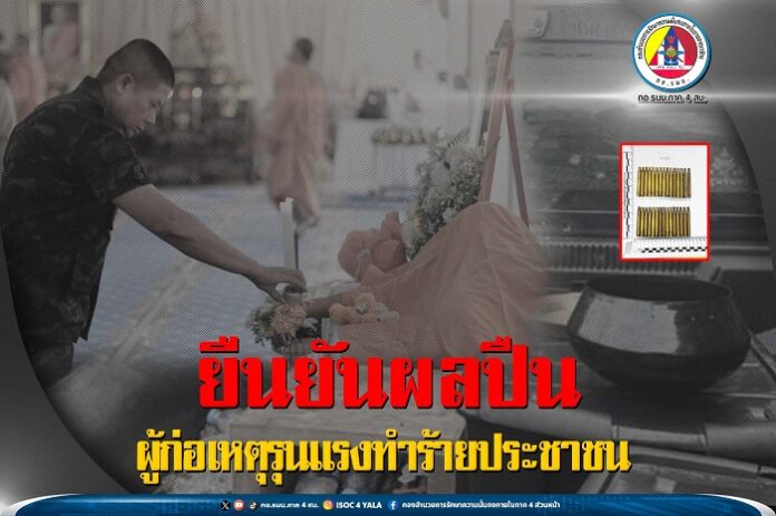 ผลการพิสูจน์หลักฐานปลอกกระสุน กรณีเมื่อวันที่ 22 เมษายน 2568 เวลาประมาณ 06.00 น. ที่ผ่านมา เกิดเหตุคนร้ายใช้อาวุธปืนยิง ร้อยตำรวจโท วัฒนารมย์ ชูปาน ขณะขับรถยนต์กระบะ แบบ 4 ประตู ยี่ห้ออีซูซุ รุ่นดีแม็ค สีดำ ป้ายทะเบียน ฎบ 6771 กรุงเทพฯ ออกจากวัดกุหร่า พร้อมด้วยพระ และ สามเณร จำนวน 6 รูป เมื่อถึงที่เกิดเหตุถูกคนร้ายยิง เป็นเหตุให้ สามเณร วงศกร ชูมาปาน (เสียชีวิต) และสามเณร โภคนิษฐ์ ฯ (ได้รับบาดเจ็บ) รถยนต์ได้รับความเสียหายในพื้นที่ หน้าวัดเกาะอภินิหาร หมู่ที่ 6 ตำบลเปียน อำเภอสะบ้าย้อย จังหวัดสงขลา เจ้าหน้าที่ได้เข้าตรวจสอบพื้นที่และเก็บหลักฐานวัตถุพยาน เพื่อเร่งดำเนินการนำผู้กระทำผิดเข้าสู่กระบวนการตามกฎหมาย ซึ่งสามารถเก็บปลอกกระสุนปืนเล็กกล ขนาด .223 (5.56 มิลลิเมตร) จำนวน 30 ปลอก ได้ในที่เกิดเหตุ ผลการตรวจพิสูจน์ปลอกกระสุน ทั้ง 30 ปลอก นั้นยืนยันให้รู้ว่ายิงมาจากปืน m16 กระบอกเดียวกัน และตรวจพบประวัติในสารบบของ ศูนย์พิสูจน์หลักฐาน 10 จำนวน 6 คดี ที่ยังปรากฏว่าปืนกระบอกดังกล่าว เคยใช้ยิงเจ้าหน้าที่ตำรวจ ทหารประชาชนมาแล้ว และได้สังหารเจ้าหน้าที่ตำรวจ ทหาร ไปแล้ว จำนวน 2 นาย และประชาชนอีก 4 ราย ประกอบด้วย