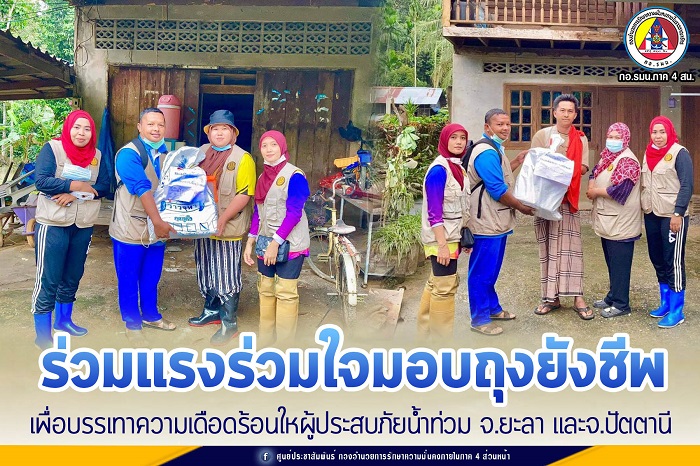 จากสถานการณ์น้ำท่วมในพื้นที่จังหวัดยะลา เมื่อวันที่ 7 มกราคม 2564 ที่ผ่านมานั้น ทำให้ประชาชนในหลายพื้นที่ได้รับความเดือดร้อนเป็นวงกว้าง โดยเฉพาะในพื้นที่ลุ่มต่ำที่ติดกับริมแม่น้ำปัตตานี บริเวณตำบลท่าสาป ตำบลยุโป ตำบลตาเซะ ในเขตอำเภอเมือง จังหวัดยะลา น้ำได้เอ่อล้นเข้าท่วมพื้นที่บ้านเรือนของชาวบ้าน พื้นที่ทางการเกษตร และเส้นทางที่จะเข้าสู่ตัวเมืองยะลา จึงทำให้ทุกภาคส่วนทั้งหน่วยงานภาครัฐ ภาคเอกชน และประชาชน เร่งหาทางช่วยเหลือประชาชนที่ได้รับผลกระทบ และยังได้ร่วมทำครัวอาหาร ข้าวกล่อง น้ำดื่ม และบรรจุถุงยังชีพ เพื่อนำไปแจกจ่ายแก่ชาวบ้านที่ได้รับผลกระทบจากประสบภัยน้ำท่วมในครั้งนี้ เป็นการบรรเทาความเดือดร้อนในเบื้องต้น