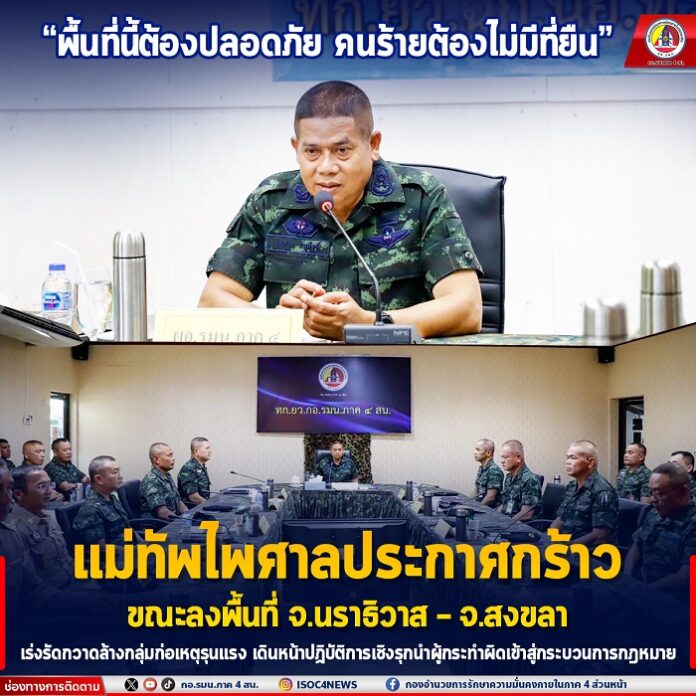 โดยแม่ทัพภาคที่ 4 ได้เน้นย้ำการขับเคลื่อนภารกิจด้วยมาตรการเชิงรุก เพื่อสกัดกั้นการก่อเหตุรุนแรงอย่างครอบคลุมทุกมิติ พร้อมเร่งรัดการติดตามคดีความ และบังคับใช้กฎหมายกับกลุ่มผู้ที่เกี่ยวข้องกับเหตุความรุนแรง เพื่อสร้างความเชื่อมั่นและความปลอดภัยในชีวิตและทรัพย์สินของประชาชนในพื้นที่ ทั้งนี้ ได้สั่งการให้เร่งติดตามกลุ่มผู้ก่อเหตุที่ยังคงแฝงตัวอยู่ทั้งในประเทศและประเทศเพื่อนบ้าน รวมถึงในพื้นที่ป่าเขา โดยใช้กลไกการปฏิบัติการร่วมของหน่วยเฉพาะกิจต่าง ๆ ในการนำตัวผู้กระทำผิดเข้าสู่กระบวนการยุติธรรมโดยเร็ว