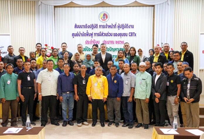 สำหรับกิจกรรมประชุมสัมมนาเชิงปฏิบัติการเจ้าหน้าที่ผู้ปฏิบัติงานศูนย์บำบัดฟื้นฟูการมีส่วนร่วมของชุมชน CBTx ครั้งที่ 4 ในปีงบประมาณ 2568 จัดขึ้นระหว่างวันที่ 14-16 พฤษภาคม 2568 เพื่อพัฒนาความรู้ ความสามารถ และเสริมสร้างทักษะของเจ้าหน้าที่ที่ปฏิบัติงานในศูนย์บำบัดฟื้นฟูการมีส่วนร่วมของชุมชน (CBTx) ซึ่งได้ผ่านการอบรมสัมมนาเกี่ยวกับความรู้ขั้นตอนต่างๆในการขับเคลื่อนงานการแก้ไขปัญหายาเสพติดในชุมชน ทั้งนี้เพื่อให้งานการแก้ไขปัญหายาเสพติดตามชุมชนต่างๆเกิดผลเป็นรูปธรรมมีประสิทธิภาพ ซึ่งเป็นไปตามนโยบายการขับเคลื่อนงานป้องกันและแก้ไขปัญหายาเสพติดของ แม่ทัพภาคที่ 4/ผู้อำนวยการรักษาความมั่นคงภายในภาค 4 ในการบำบัดฟื้นฟูผู้ติดยาเสพติดผ่านระบบสาธารณสุข , การขับเคลื่อนกระบวนการบำบัดฟื้นฟูการมีส่วนร่วมของชุมชน CBTx จากชุมชนต้นแบบ และแนวทางการบำบัด, ฮูกุมปากัต (ธรรมนูญหมู่บ้าน 9 ดี) กับการแก้ไขปัญหายาเสพติด ซึ่งเป็นส่วนสำคัญในการผลักดันการดำเนินงานของโครงการ CBTx ให้บรรลุเป้าหมาย ลดปัญหายาเสพติด สร้างชุมชนที่เข้มแข็งและปลอดภัยจากยาเสพติดในระยะยาว