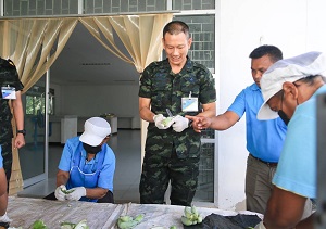 วันที่ 15 พฤษภาคม 2568 เวลา 09.00 น. ที่ ฟาร์มตัวอย่างในสมเด็จพระนางเจ้าสิริกิติ์ พระบรมราชินีนาถ พระบรมราชชนนีพันปีหลวง บ้านน้ำดำ ตำบลปุโละปุโย อำเภอหนองจิก จังหวัดปัตตานี พันเอก ณัฐพล ชัยสุภา รองผู้อำนวยการศูนย์ประสานงานโครงการอันเนื่องมาจากพระราชดำริ พร้อมด้วย ฝ่ายอำนวยการศูนย์ประสานงานโครงการอันเนื่องมาจากพระราชดําริ ร่วมกับ ศูนย์ประชาสัมพันธ์กองอำนวยการรักษาความมั่นคงภายในภาค 4 ส่วนหน้า ขับเคลื่อนงานโครงการอันเนื่องมาจากพระราชดำริในพื้นที่ฟาร์มตัวอย่างฯ บ้านน้ำดำ เพื่อถ่ายทอดการปฏิบัติงานของ ศูนย์ประสานงานโครงการอันเนื่องมาจากพระราชดำริ ที่มุ่งเน้น สืบสาน รักษา ต่อยอด งานตามพระราชเสาวนีย์ ของสมเด็จพระนางเจ้าสิริกิติ์ พระบรมราชินีนาถ พระบรมราชชนนีพันปีหลวง เพื่องานตามพระราชเสาวนีย์ สามารถเลี้ยงดูและพึ่งพาตนเองได้ เป็นแหล่งจ้างแรงงานให้สมาชิกของฟาร์มตัวอย่างฯมีงานทำ มีรายได้เลี้ยงครอบครัว ได้เรียนรู้การทำเกษตร ปศุสัตว์ และงานหัตถกรรม อย่างถูกหลักวิชาการ ตลอดจนเป็นแหล่งเรียนรู้ ซึ่งน้อมนำหลักปรัชญาเศรษฐกิจพอเพียง มาปรับใช้ในการขับเคลื่อนงานตามพระราชเสาวนีย์ ในรูปแบบชุมชนเพื่อชุมชน ภายใต้สังคมพหุวัฒนธรรมที่เข้มแข็ง สืบไป