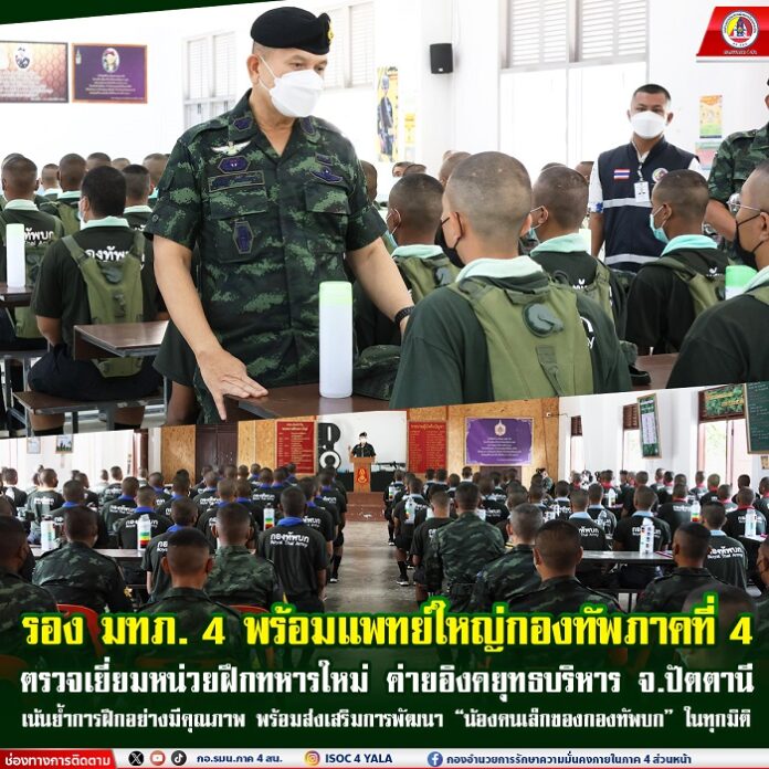 วันนี้ (15 พฤษภาคม 2568) 08.30 น. พลตรี วรเดช เดชรักษา รองแม่ทัพภาคที่ 4 / รองผู้อำนวยการรักษาความมั่นคงภายในภาค 4 ส่วนหน้า พร้อมด้วย พลตรี รัฐวิชญ์ วุฒิภัทรพิบูลย์ ผู้อำนวยการโรงพยาบาลค่ายวชิราวุธ / แพทย์ใหญ่กองทัพภาคที่ 4 ลงพื้นที่ตรวจเยี่ยมให้กำลังใจน้องคนเล็กกองทัพบก ทหารกองประจำการ ผลัดที่ 1 ประจำปี 2568 พร้อมตรวจสอบความพร้อมของหน่วยฝึกทหารใหม่ เพื่อเน้นย้ำให้หน่วยฝึกปฏิบัติตามมาตรฐานการฝึกอย่างเคร่งครัด ตามนโยบายของผู้บัญชาการทหารบก และแนวทางของกรมยุทธศึกษาทหารบก นอกจากนี้ยังร่วมพบปะ พูดคุย สร้างขวัญกำลังใจ สร้างความอุ่นใจให้กับน้องทหารใหม่อย่างเป็นกันเอง ซึ่งประกอบด้วย หน่วยฝึกทหารใหม่ มณฑลทหารบกที่ 46 และ กองพันทหารราบที่ 3 กรมทหารราบที่ 153 ค่ายอิงคยุทธบริหาร ตำบลบ่อทอง อำเภอหนองจิก จังหวัดปัตตานี