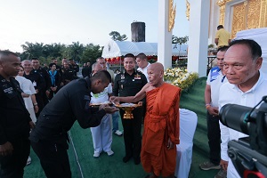 ทั้งนี้ ในช่วงเช้าที่ผ่านมา เวลา 08.39 น. พลเอก มณี จันทร์ทิพย์ ที่ปรึกษาผู้อำนวยการรักษาความมั่นคงภายในภาค 4 / นายกสมาคมเพื่อความมั่นคงพระพุทธศาสนาจังหวัดชายแดนภาคใต้ / เลขาธิการศูนย์พัฒนาและส่งเสริมพระพุทธศาสนาจังหวัดชายแดนภาคใต้ ผู้แทนแม่ทัพภาคที่ 4/ผู้อำนวยการรักษาความมั่นคงภายในภาค 4 ได้เป็นประธานในพิธีบวงสรวงเปิดงานพิธีมหาพุทธาภิเษกวัตถุมงคลหลวงพ่อทวด รุ่น 1 ที่วัดปิเหล็ง ตำบลมะรือโบออก อำเภอเจาะไอร้อง จังหวัดนราธิวาส ท่ามกลางบรรยากาศที่เต็มไปด้วยความศรัทธาและความร่วมมือระหว่างพุทธศาสนิกชนในพื้นที่จังหวัดชายแดนภาคใต้ ซึ่งพิธีมหาพุทธาภิเษกในครั้งนี้ ไม่เพียงแต่เป็นการส่งเสริมศรัทธาในพระพุทธศาสนาเท่านั้น แต่ยังสะท้อนถึงความร่วมมือและความตั้งใจในการพัฒนาแหล่งศาสนสถานของชุมชนในพื้นที่จังหวัดชายแดนภาคใต้ให้เข้มแข็งและมั่นคงยิ่งขึ้น ทั้งในด้านศาสนาและความมั่นคง