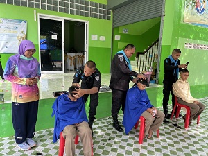 Dalam suasana yang mesra dan penuh keakraban, kanak-kanak beratur dengan tertib sambil tersenyum menunggu giliran untuk digunting rambut. Anggota tentera renjer memainkan peranan sebagai “tukang gunting sementara” dengan penuh dedikasi dan perhatian bagi memastikan pelajar mendapat potongan rambut yang kemas dan sesuai dengan peraturan sekolah.