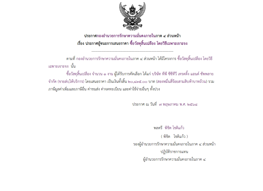 จัดซื้อ จัดจ้างประกาศผู้ชนะการเสนอราคา ประกาศผู้ชนะการเสนอราคา ซื้อวัสดุสิ้นเปลือง โดยวิธีเฉพาะเจาะจง May 20, 2025 173 Share Facebook Twitter Google+ Telegram LINE