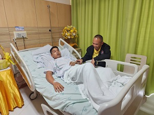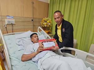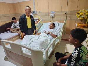 “Teguh Berdiri, Bersama Rakyat” Timbalan Komander Wilayah Tentera Ke-4 memberi semangat kepada anggota sukarelawan pertahanan yang cedera akibat insiden keganasan di wilayah sempadan Selatan Thailand.