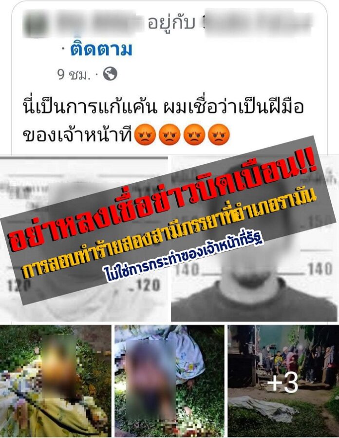 📝 Currently, media outlets aligned with the BRN are attempting to distort the facts and falsely accuse government officials on social media, claiming that they were involved in the shooting of a married couple in Village No. 2, Jakwa Subdistrict, Raman District, Yala Province, which resulted in the deaths of both individuals on May 17, 2025.