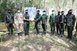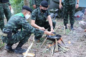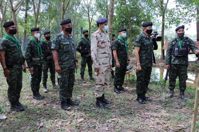 วันที่ 12 มกราคม 2564 เวลา 11.00 น. พลตรี ศานติ ศกุนตนาค ผู้บังคับหน่วยเฉพาะกิจสงขลา ลงพื้นที่ตรวจเยี่ยม ติดตามแผนปฏิบัติการเชิงรุกของชุดปฏิบัติการจรยุทธ์ ร้อย.ร.2531 บ้านโคกม้า ตำบลบ้านนา อำเภอจะนะ จังหวัดสงขลา พบปะให้กำลังใจกำลังพล พร้อมมอบแนวทางการปฏิบัติงานให้กำลังพลปฏิบัติหน้าที่ด้วยความไม่ประมาท เพิ่มความระมัดระวัง มีความพร้อมทุกสถานการณ์ ทั้งเน้นย้ำข้อปฏิบัติที่สำคัญในการเฝ้าระวังการแพร่ระบาดของเชื้อไวรัสโควิด 19 เพื่อให้ประชาชนเกิดความมั่นใจในการปฏิบัติหน้าที่ และไม่สร้างเงื่อนไขต่าง ๆให้เกิดขึ้นในพื้นที่ ก่อนจะมอบเครื่องบริโภค และร่วมรับประทานอาหารกลางวันสร้างขวัญกำลังใจแก่ชุดปฏิบัติจรยุทธ์