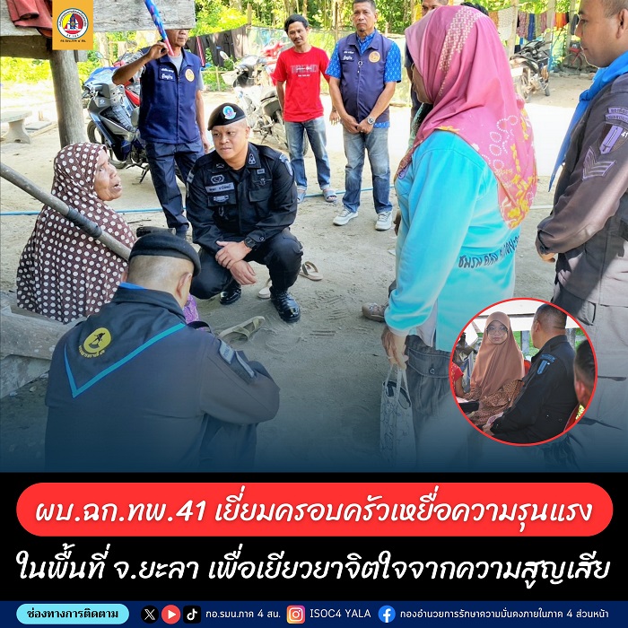 Pada 21 Mei 2025, Kolonel Jatuporn Thaneepat, Komander Pasukan Tindakan Khas Rejimen Renjer Sempadan ke-41, telah mengetuai anggotanya ke Kampung Jeubo Bumae, Mukim Jaka, Daerah Raman, Wilayah Yala, untuk menziarahi dan memberi semangat kepada keluarga mangsa yang terkorban dalam kejadian tembakan kejam oleh penjenayah bersenjata terhadap sepasang suami isteri pada 17 Mei yang lalu. Lawatan ini turut disertai dengan sumbangan wang bantuan awal dan barangan keperluan harian sebagai tanda sokongan moral kepada keluarga mangsa serta membincangkan langkah-langkah bantuan jangka panjang yang boleh disalurkan.