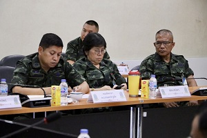 On May 23, 2025, Colonel Anucha Nonkukhetkhong, Deputy Secretary-General of ISOC Region 4 Front Command, held a meeting to monitor the weapons skills refresher training for ORB and ORM members. The meeting took place at the Coordination Center for Royal Initiative Projects (SPPR), located at Somdet Phra Suriyothai Camp, Nong Chik District, Pattani Province. The discussion focused on improving the ability to maintain local security and respond to emergencies. The session was also attended by Major General Ritthiron Sriphakdee, Deputy Director of SPPR, alongside administrative officers and volunteer members of ORB and ORM.