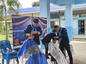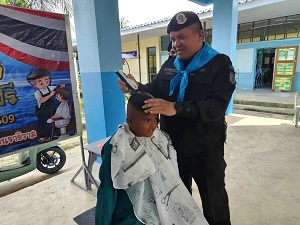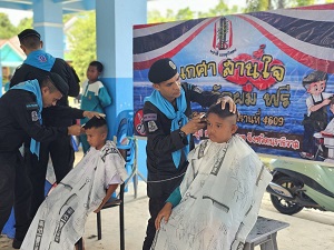This activity is part of the “Kesa San Jai: Caring Cuts, Just Like Family” (Black Army Barber Delivery) project, which aims to reduce parents’ financial burdens at the beginning of the school term while also fostering positive relationships between security personnel, students, and educators in the area.