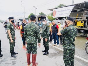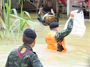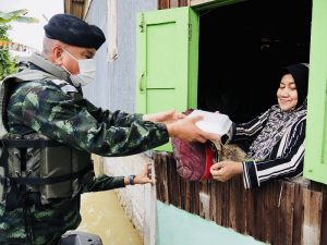 ทั้งนี้ พลตรี คมกฤช รัตนฉายา ผู้บัญชาการมณฑลทหารบกที่ 46 /ผู้บังคับหน่วยเฉพาะกิจปัตตานี ยังได้ลงพื้นที่มอบอาหารกล่องและน้ำดื่มให้แก่ผู้ได้รับผลกระทบที่ไม่สามารถมารับได้ด้วยตนเอง เนื่องจากถนนจมอยู่ใต้น้ำ ไม่สามารถสัญจรไป-มาได้ ทำให้ยากต่อการเข้าออก เพื่อเป็นการสร้างขวัญและกำลังใจแก่ประชาชนผู้ประสบอุทกภัยในพื้นที่ดังกล่าว โดยผู้บัญชาการมณฑลทหารบกที่ 46 /ผู้บังคับหน่วยเฉพาะกิจปัตตานี ได้มีความห่วงใยประชาชน จึงอยากให้ทุกคนอย่าละเลยการดูแลสุขภาพ และกำชับเจ้าหน้าที่ทุกนายให้ติดตามสถานการณ์น้ำอย่างใกล้ชิดจนกว่าสถานการณ์จะเข้าสู่ภาวะปกติ