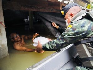 พลตรี คมกฤช รัตนฉายา ผู้บัญชาการมณฑลทหารบกที่ 46 /ผู้บังคับหน่วยเฉพาะกิจปัตตานี จัดกำลังพล พร้อมรถครัวสนาม ลงพื้นที่ช่วยเหลือผู้ประสบอุทกภัยในพื้นที่ บ้านปะกาฮารัง หมู่ที่ 7 ตำบลปะกาฮารัง อำเภอเมือง จังหวัดปัตตานี และพื้นที่ใกล้เคียง โดยการประกอบอาหารกล่องและสนับสนุนน้ำดื่ม จำนวน 500 ชุด แจกจ่ายให้แก่ผู้ประสบอุทกภัยในพื้นที่ เพื่อบรรเทาความเดือดร้อนในเบื้องต้น ทั้งนี้ได้ลงพื้นที่ร่วมกับ หน่วยเฉพาะกิจปัตตานี 25 และได้รับการสนับสนุนเรือจาก ศูนย์บรรเทาสาธารณภัยกองพลพัฒนาที่ 4 ในการใช้อำนวยความสะดวก
