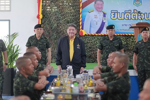 โดยเวลา 12.00 น. รองนายกรัฐมนตรีและรัฐมนตรีว่าการกระทรวงกลาโหม เดินทางเยี่ยมให้กำลังใจน้องเล็กของกองทัพบก ณ หน่วยฝึกทหารใหม่กองพันทหารราบที่ 3 กรมทหารราบที่ 151 ค่ายกรมหลวงนราธิวาสราชนครินทร์ พร้อมพบปะให้กำลังใจแก่น้องๆ โดยระบุว่า กองทัพบกมีหน้าที่ฝึกฝน พัฒนาและสร้างกำลังพลให้เป็นผู้มีความเข้มแข็ง รู้รักสามัคคี รู้เสียสละเพื่อส่วนรวม ขอให้ทุกนายอดทน หมั่นฝึกฝน เรียนรู้ ปรับตัวให้เข้ากับการเปลี่ยนแปลง พร้อมชื่นชมผู้ที่สมัครใจเข้ามารับใช้ชาติ ซึ่งสะท้อนถึงความตระหนักในหน้าที่และความสนใจสู่อาชีพทหารในอนาคต จะเห็นได้จากหน่วยฝึกทหารใหม่ที่นี่มียอดสมัครใจเข้ารับราชการเป็นทหารกองประจำการมากว่า 90% เมื่อเทียบกับปีที่ผ่านมา ยืนยันจะดูแลน้องทหารใหม่อย่างดีที่สุด