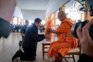 โดยในช่วงเช้า นายภูมิธรรม เวชยชัย รองนายกรัฐมนตรีและรัฐมนตรีว่าการกระทรวงกลาโหม เป็นประธานฝ่ายฆราวาสในพิธีทอดผ้าป่าสามัคคี เพื่อสมทบทุนจัดสร้างพระอุโบสถ ทำนุบำรุงพระพุทธศาสนา เพื่อมอบความห่วงใย สร้างขวัญกำลังใจให้กับพี่น้องไทยพุทธ โดยร่วมรับประทานอาหารกลางวันกับประชาชนในพื้นที่ ซึ่งบรรยากาศเป็นไปด้วยความอบอุ่น ในการนี้ได้นำถวายผ้าป่าสามัคคี พร้อมเครื่องไทยธรรมแด่พระธรรมวัชรจริยาจารย์ ที่ปรึกษาเจ้าคณะภาค 18 (เจ้าอาวาสวัดประชุมชลธารา) เป็นจำนวนเงินมากกว่า 420,000 บาท