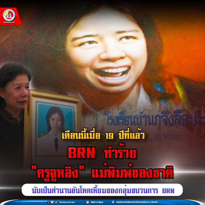 “19 ปีแห่งความทรงจำ โศกนาฎกรรมที่เกิดขึ้นกับบุคลากรทางการศึกษาในพื้นที่จังหวัดชายแดนภาคใต้ ดังกรณีของ “ครูจูหลิง ปงกันมูล” ครูสาวของโรงเรียนบ้านกูจิงลือปะ อำเภอระแงะ จังหวัดนราธิวาส ที่ถูกกลุ่มขบวนการ BRN รุมทำร้ายอย่างโหดเหี้ยมจนบาดเจ็บสาหัส เมื่อวันที่ 19 พฤษภาคม 2549 และก็จากไปอย่างไม่มีวันกลับเมื่อวันที่ 8 มกราคม 2550 หรืออีก 8 เดือนถัดมา