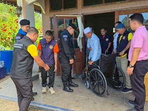 On May 27, 2025, at 11:00 a.m., warmth and kindness poured into House No. 29, Village No. 5, Ban Kadu Bae, Kototura Subdistrict, Raman District, Yala Province. The 41st Ranger Regiment Task Force, led by the Commander of Ranger Company 4112 and accompanied by the Civil Affairs Task Force, visited the area along with the Director of the Subdistrict Health Promoting Hospital, village health volunteers, and community leaders to deliver a wheelchair to Mr. Abdulromae Abule, a person with a type 3 mobility disability.
