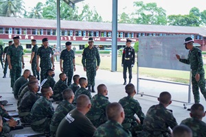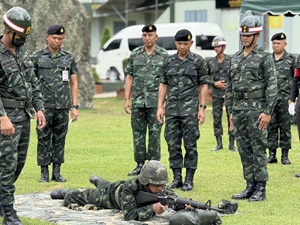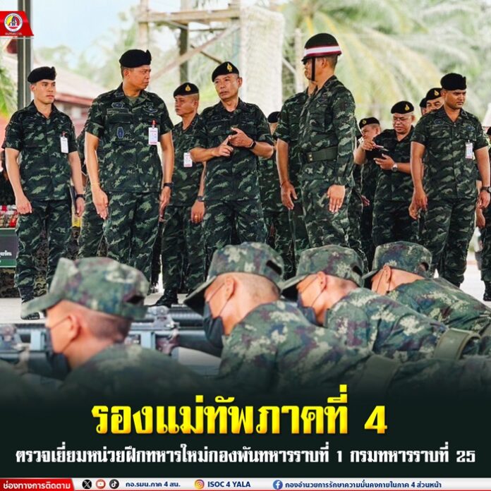 เมื่อวันที่ 29 พฤษภาคม 2568 พลตรี ชาคริต อุจะรัตน รองแม่ทัพภาคที่ 4 / ผู้อำนวยการรักษาความมั่นคงภายในภาค 4 ส่วนหน้า ตรวจเยี่ยมการฝึกทหารใหม่ ณ หน่วยฝึกทหารใหม่ กองพันทหารราบที่ 1 กรมทหารราบที่ 25 ค่ายเขตอุดมศักดิ์ อำเภอเมือง จังหวัดชุมพร พร้อมทั้งได้รับฟังบรรยายสรุปเกี่ยวกับสถานภาพของทหารใหม่ การดำเนินการฝึก และมาตรการด้านความปลอดภัยของหน่วยฝึก พร้อมเน้นย้ำให้ปฏิบัติตามนโยบายของผู้บังคับบัญชาทุกระดับอย่างเคร่งครัด เพื่อเสริมสร้างความมีระเบียบวินัย ความปลอดภัย และคุณภาพของการฝึก โดยมี พันโท ภูกิจ เอกกิตติภูมิ ผู้บังคับกองพันทหารราบที่ 1 กรมทหารราบที่ 25 (ผบ.ร.25 พัน.1) ให้การต้อนรับ