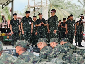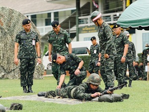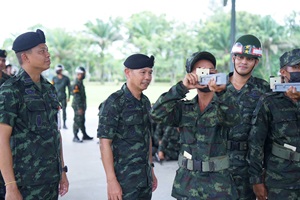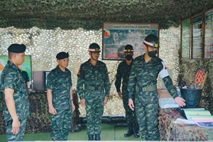 จากนั้นได้ตรวจเยี่ยมการฝึกในสถานีต่าง ๆ ได้แก่ สถานีฝึกการปฏิบัติบนแนวยิง สถานีคานฝึกเล็ง และสถานีฝึกเล็ง 3 จุด พร้อมทั้งให้กำลังใจ สอบถามความเป็นอยู่ของทหารใหม่ รวมถึงมอบอาหารพิเศษ เพื่อสร้างขวัญและกำลังใจให้กับทหารใหม่และครูฝึก